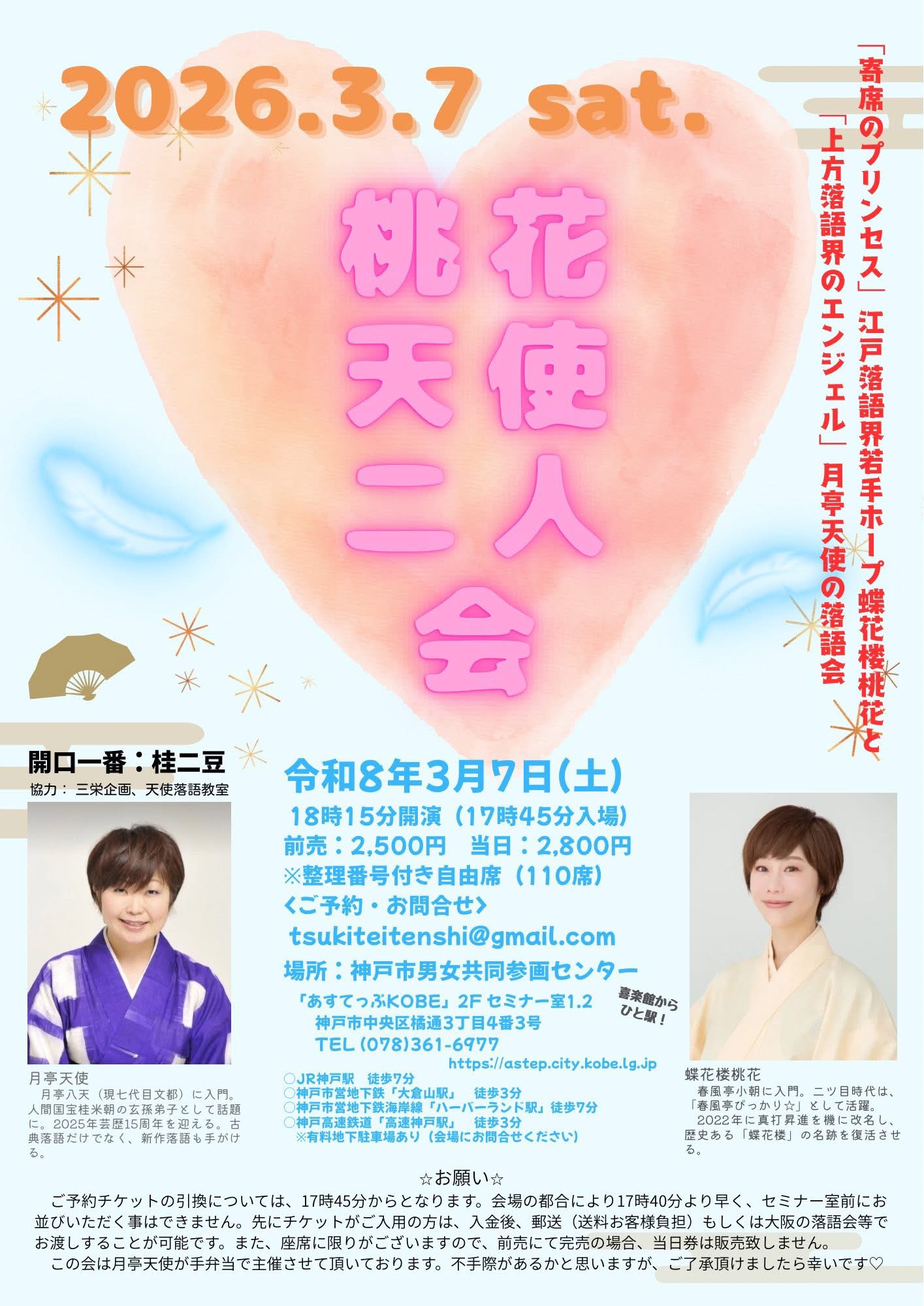 | 出 演 | 月亭天使、蝶花楼桃花、前座:桂二豆 |