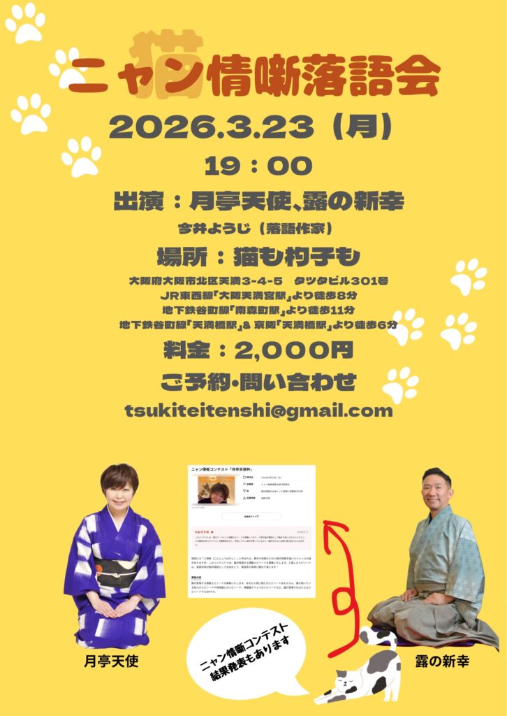 | 出 演 | 月亭天使、露の新幸、今井ようじ(落語作家) |
